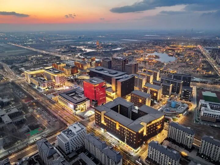 雄安商務(wù)服務(wù)中心夜景(2025年3月15日攝,無(wú)人機(jī)照片)。新華社記者 牟宇 攝